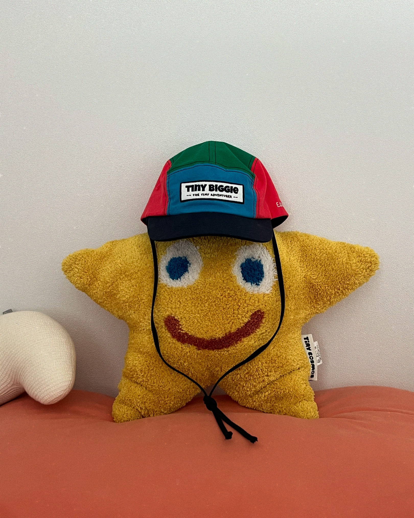 타이니비기의 시그니처 제품, 타이니 타이 코튼 캠프캡 멀티컬러입니다. 가볍고 부드러운 텍스처의 프리미엄 바이오 워싱 코튼 원단을 사용해 타이니비기만의 컬러 조합이 돋보이는 알록달록한 무드와 탐험가 감성을 담았습니다. 얼굴을 감싸 묶을 수 있는 타이끈 디테일을 더해 턱 밑으로 리본을 묶거나, 안쪽으로 넣어 뒷홀로 빼 묶기, 또는 길게 늘어뜨려 끝부분에 매듭을 주는 등 다양한 방식으로 연출할 수 있습니다. 타이끈은 기성 부자재가 아닌 모자와 동일한 코튼 원단으로 제작되어 전체적인 완성도를 높였으며, 아이들 피부에 직접 닿는 스웨트 밴드와 안쪽 심테이프 또한 모두 100% 코튼으로 제작되어 더욱 편안한 착용감을 제공합니다. 앞면에는 빈티지한 질감의 퀼트지 위에 자수를 더한 로고 패치를 적용했고, 사이즈 조절 부분에는 볼캡과 동일한 사양의 버클을 사용해 라인업 전체의 통일감을 유지했습니다. 사이즈 조절 밴드에는 타이니비기의 시그니처 미니자수를, 사이드에는 슬로건 E.D.P.D (Every Day, Park Day) 자수를 더해 디테일까지 완성한 제품입니다. 타이니비기의 알록달록 타이 캠프캡과 함께 귀여운 추억 만들어 보아요.